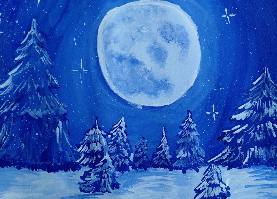 12 лет, пейзаж, гуашь