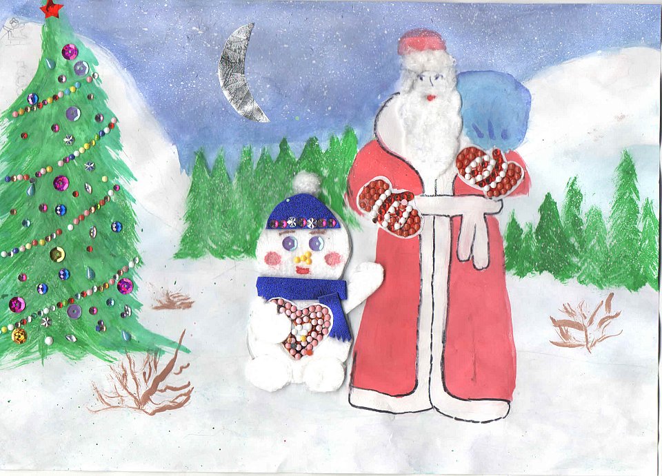 13 лет, гуашь, ватные диски, пайетки