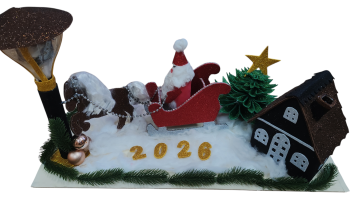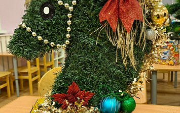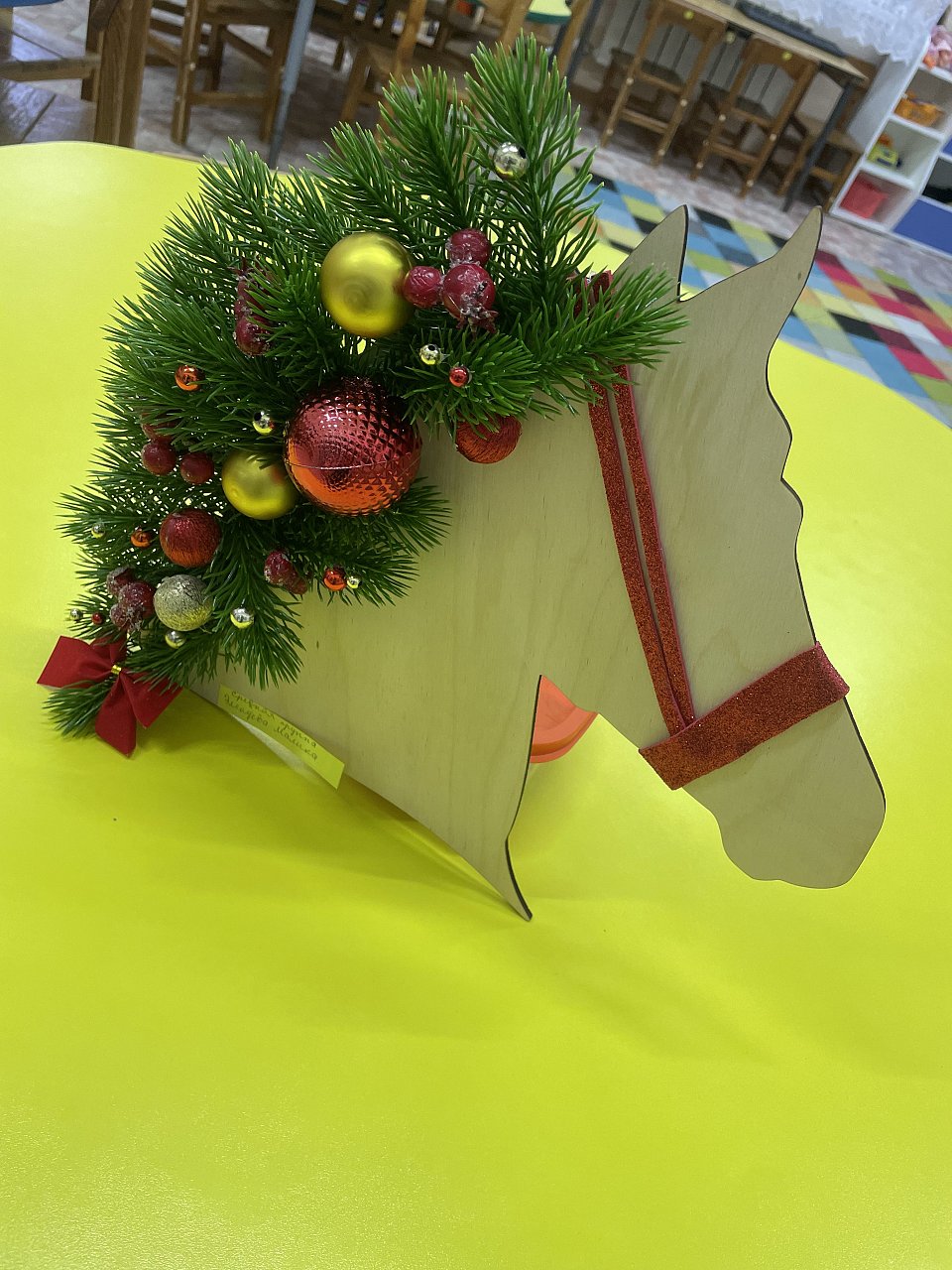 Возраст ребенка 4.5 года Использованные материалы: картон, клей, еловая ветка, игрушки