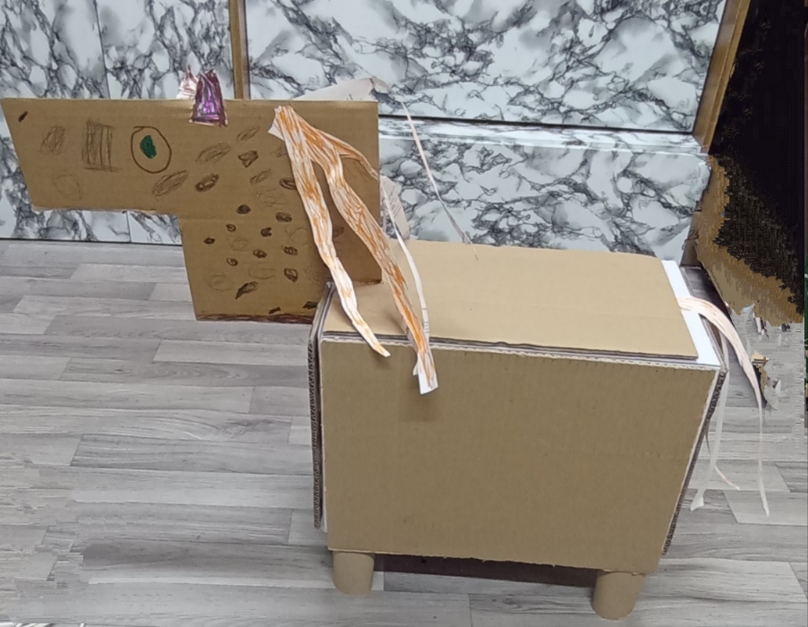 Ребёнок 6 лет. Картонные коробки, втулки.