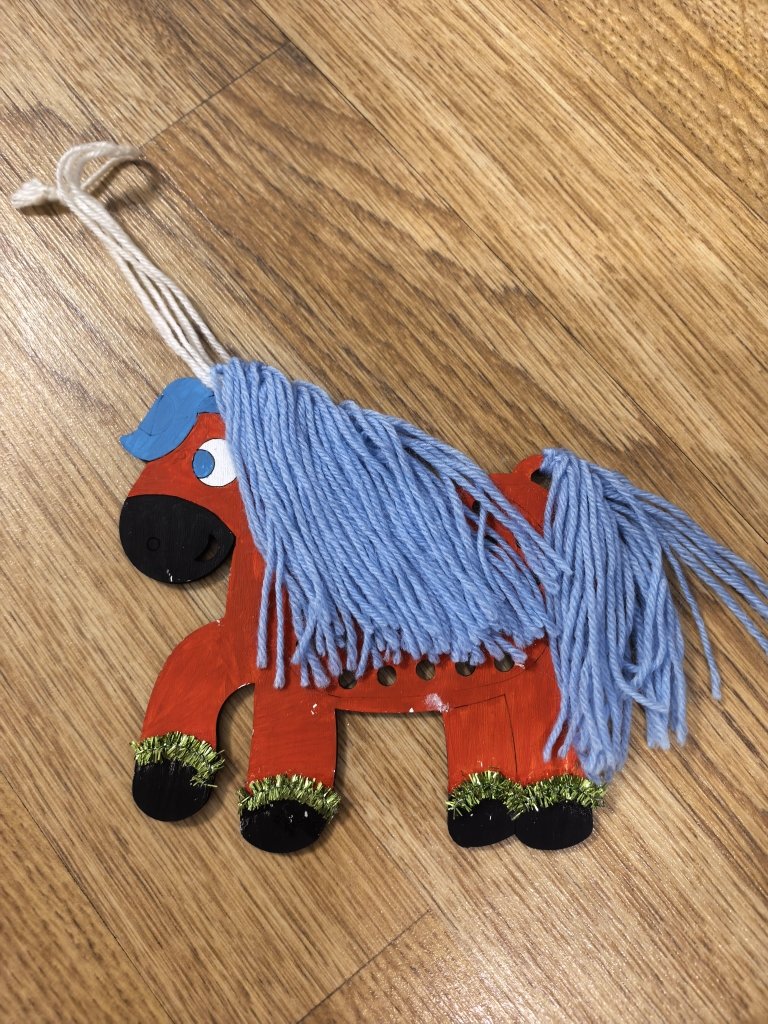 3 года заготовка раскрашена гуашью, грива и хвост сделаны из ниток так же сделаны украшения