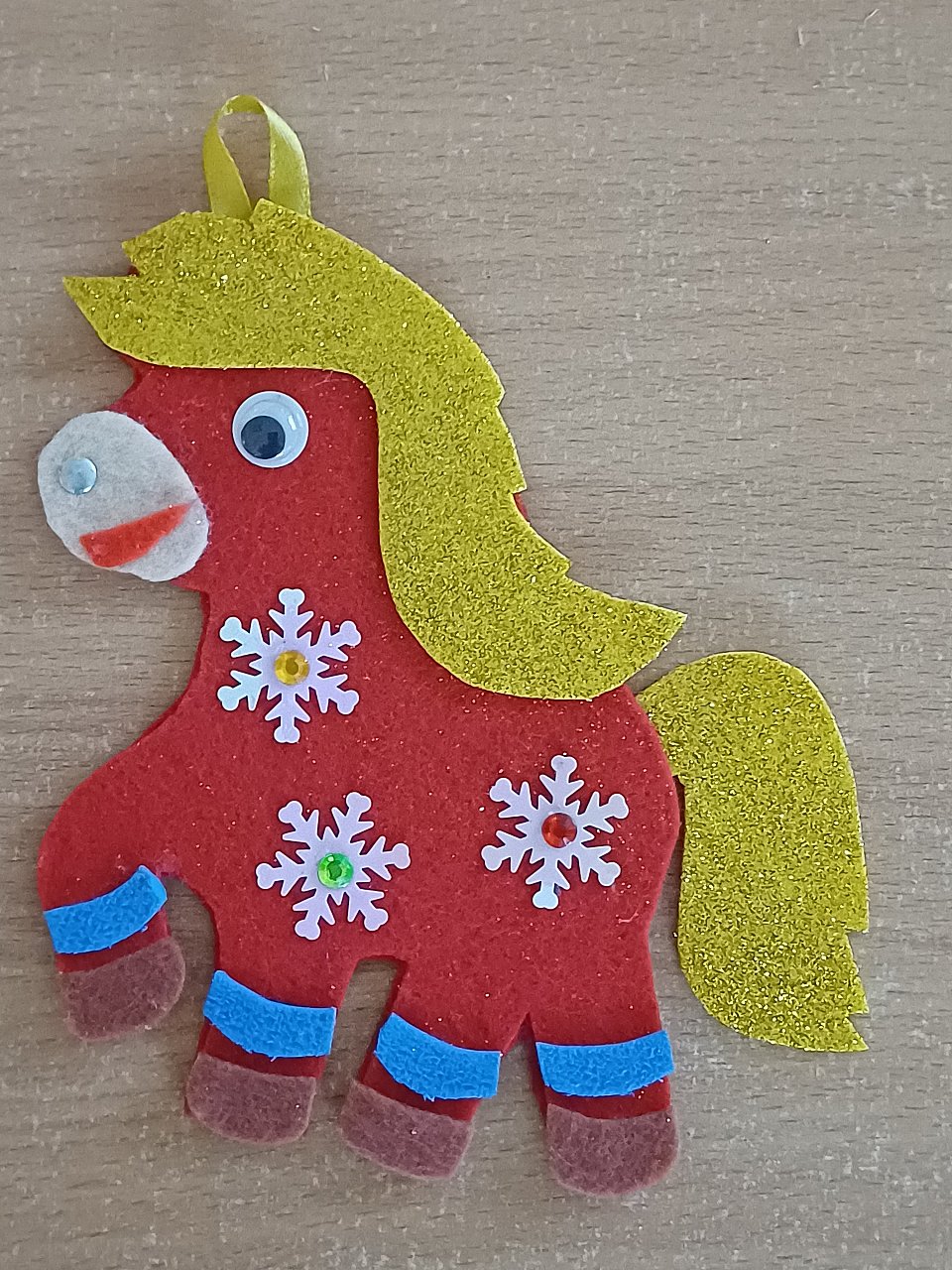 Участнику 9 лет. Работа выполнена из фетра и мягкого пластика, украшена фольгинированными снежинками и стразами.