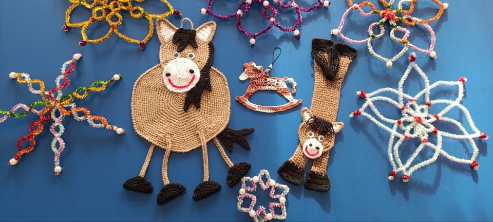Работы (прихватка, закладка, брелок) связаны крючком. В работе использовала пряжу: "Детская новинка", "Ирис".