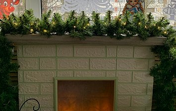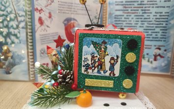 Работа выполнена из еловых шишек, ваты, пенопласта и новогодних украшений