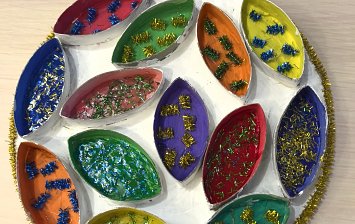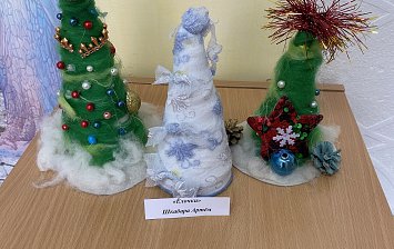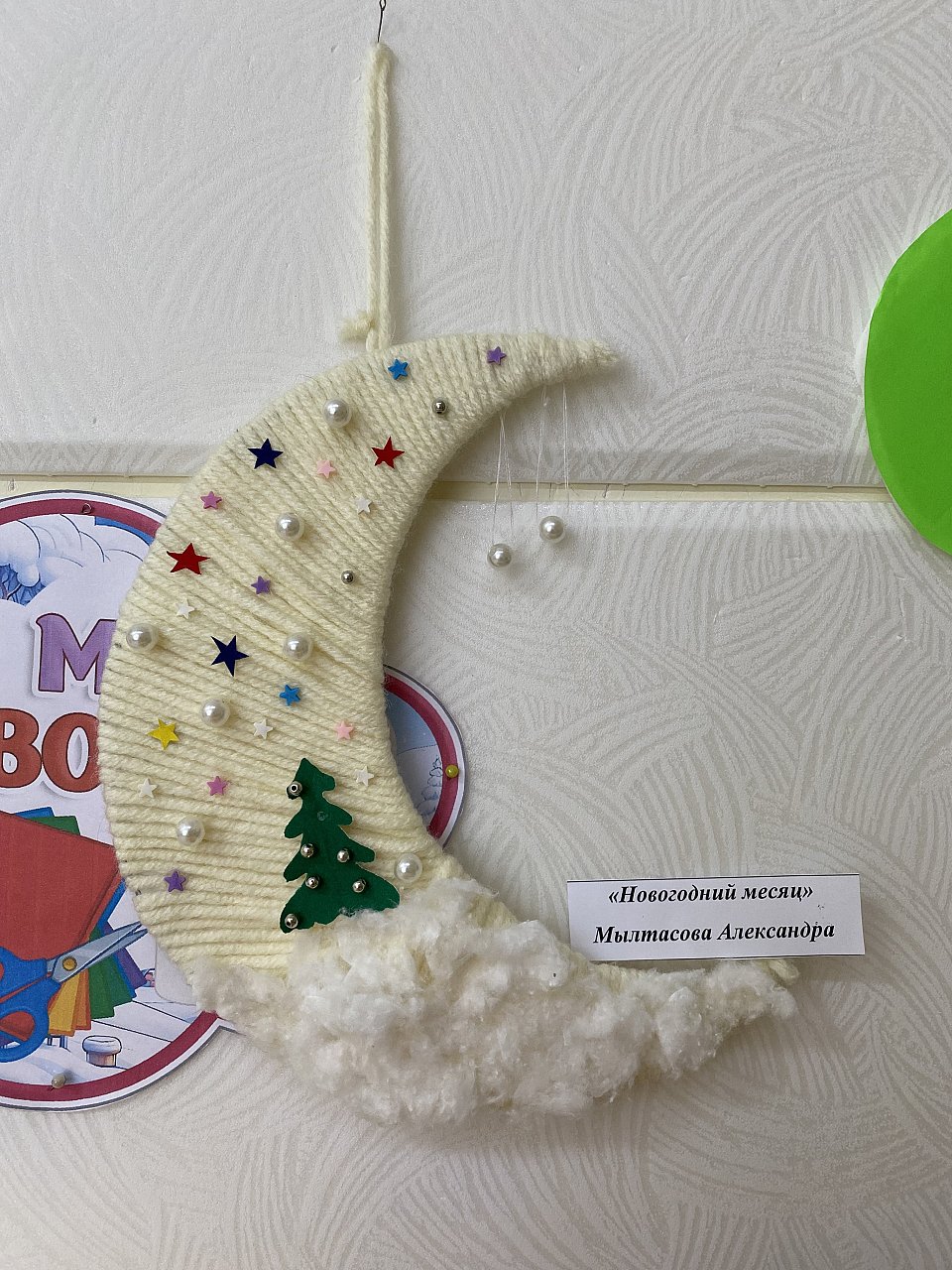 5 лет. Картон, цветная бумага, белые нитки, вата, бусинки.