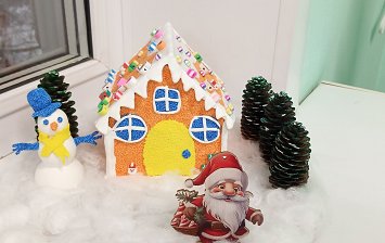 Выполнила Александра, 5 лет. При выполнении работы использовала разные техники: аппликация, рисование красками, создание объемных фигур. Использовала материалы: бумага, картон, вата, гипс, синельная проволока, клейстер, акриловые краски.