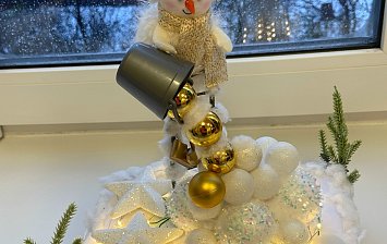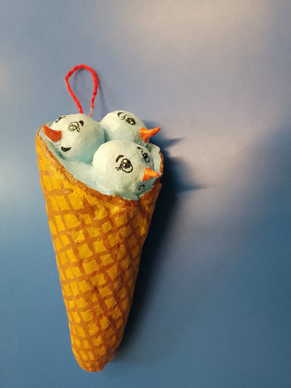 6 лет, елочная игрушка, картон, вата, клей ПВА, краски акриловые.