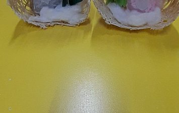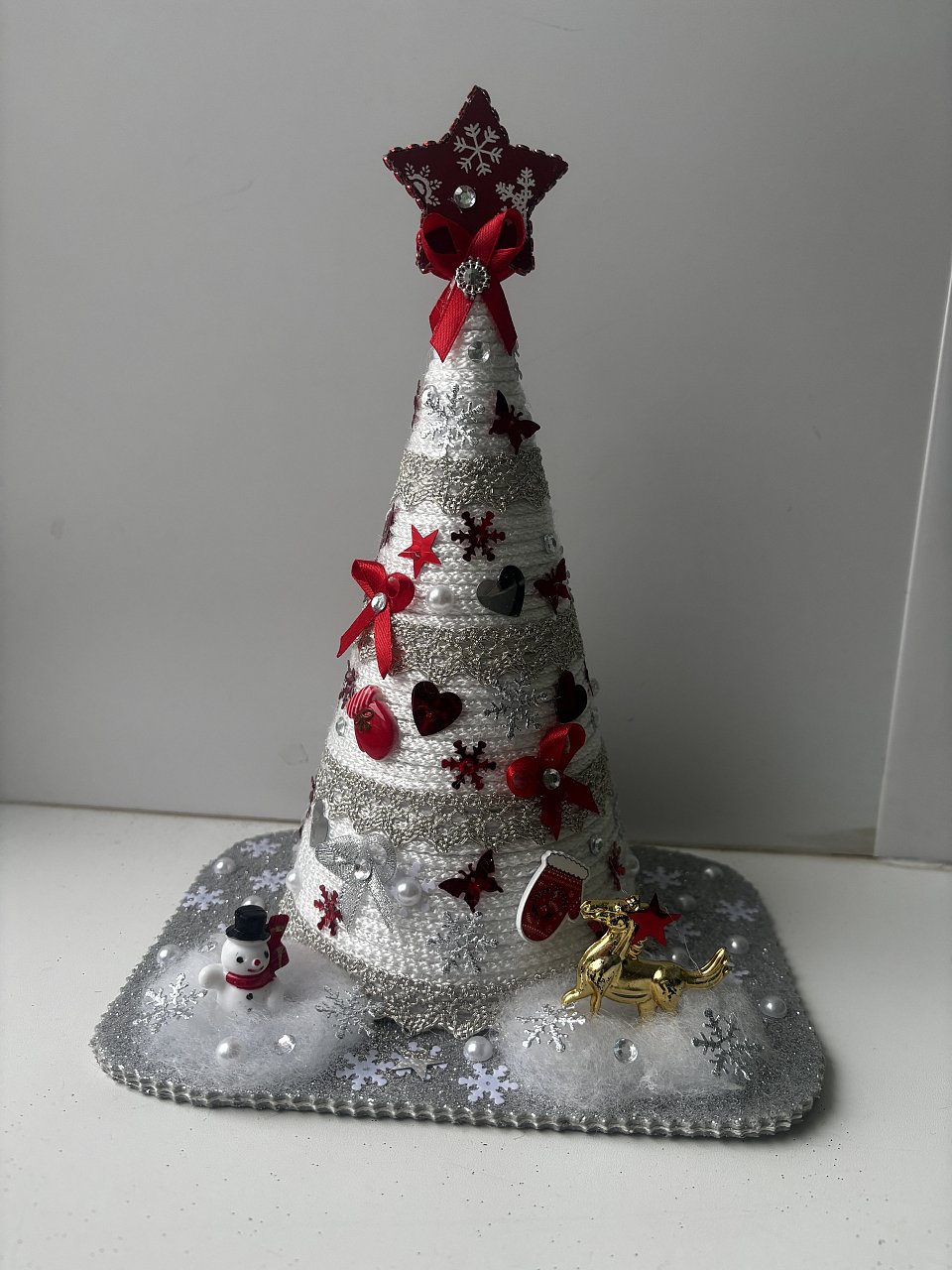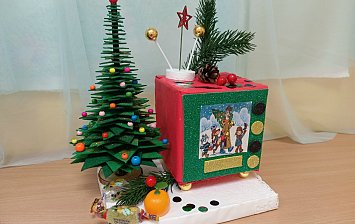 6 лет, работа выполнена из картона, ниток, синтепона, атласных лент и декоративных элементов