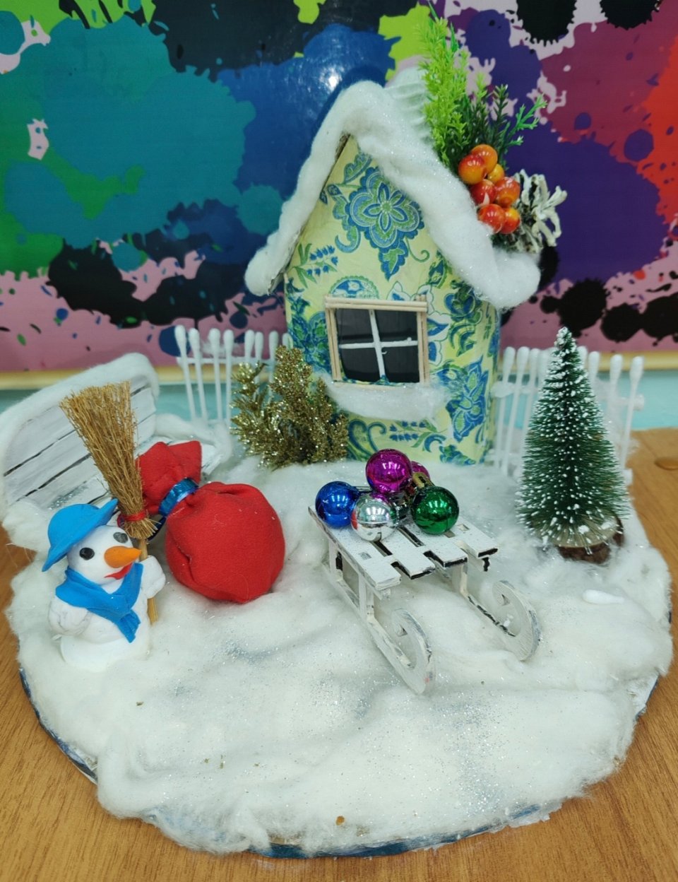 Использованные материалы - вата, ватные палочки, картон, елочные игрушки.