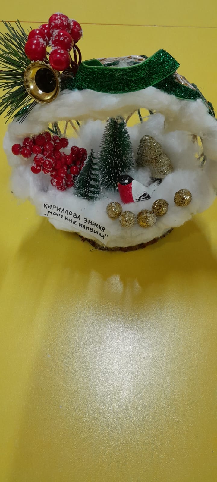 2 года: нитки, клей ПВА, вата, искусственные елочки и ягода, игрушки из пенопласта