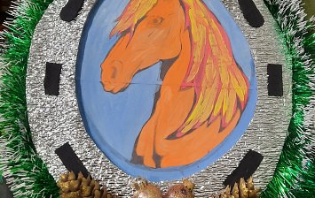 Работа выполнена ребком 4 лет из ниток,ткани,может украшать интерьер