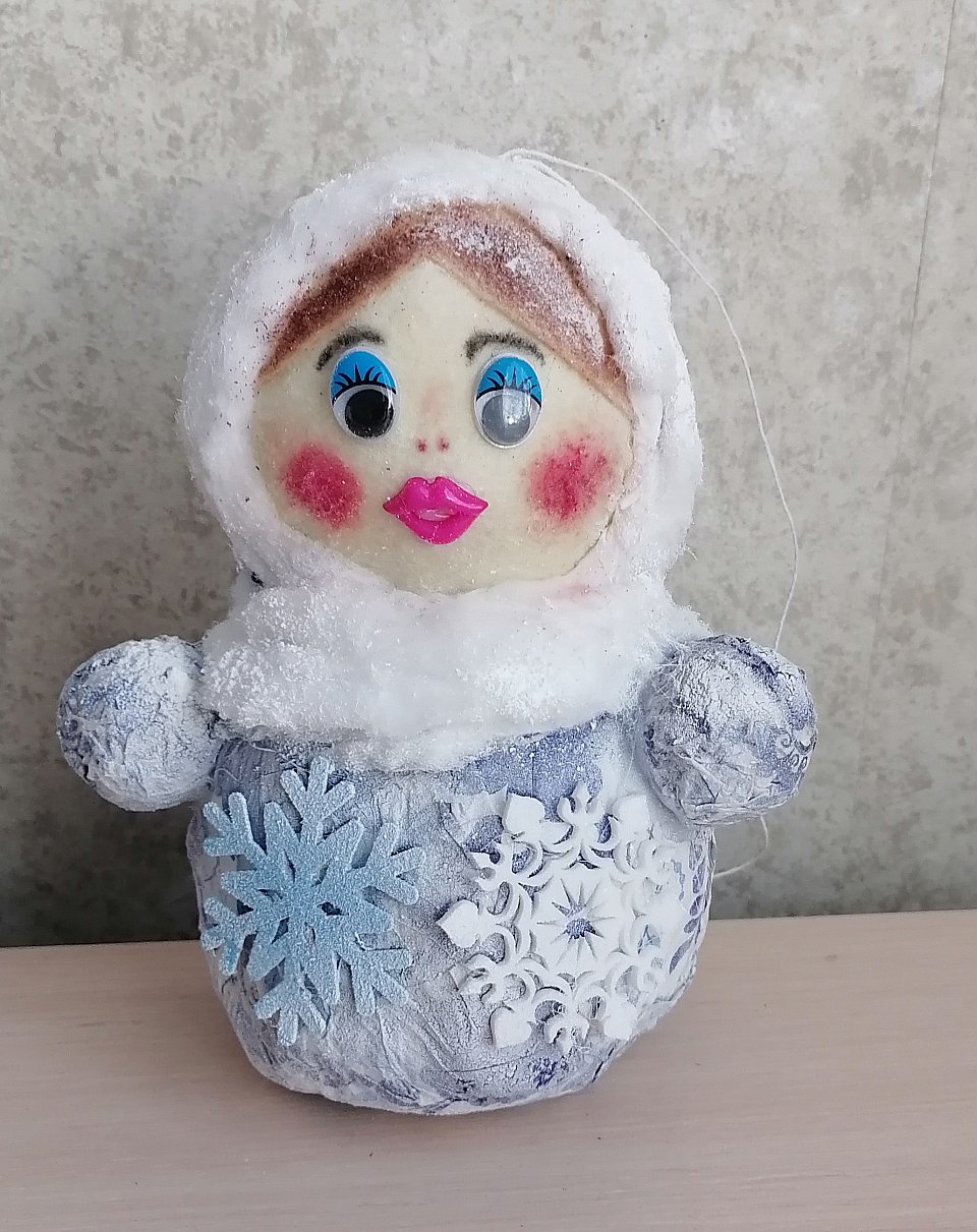 9 лет. Используемые материалы: бумага, вата, клей ПВА, декоративные глаза и губы