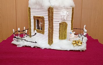 8 лет, работа выполнена при использовании разнообразным материалов: шарики, лампочка, фоамиран