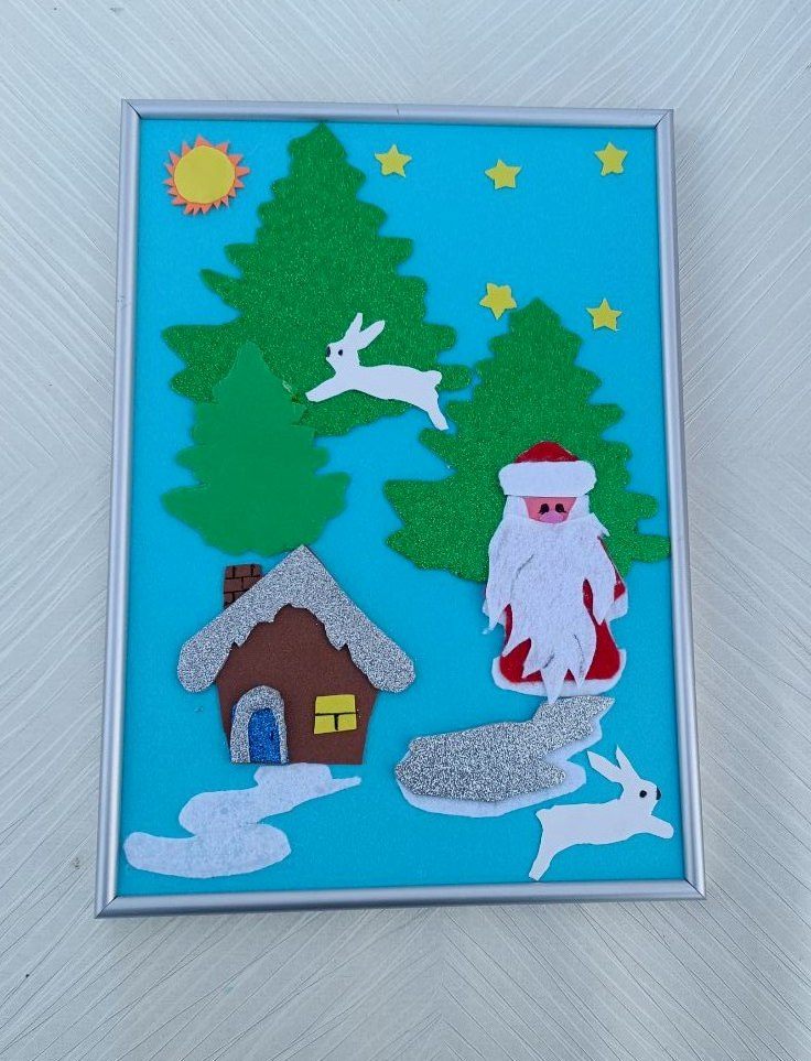 Прогулка Деда Мороза около своего домика.