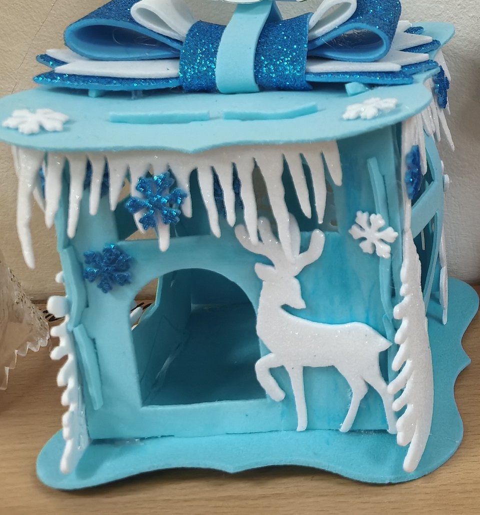 Игрушка выполнена с использованием фоамирана и декоративных элементов.