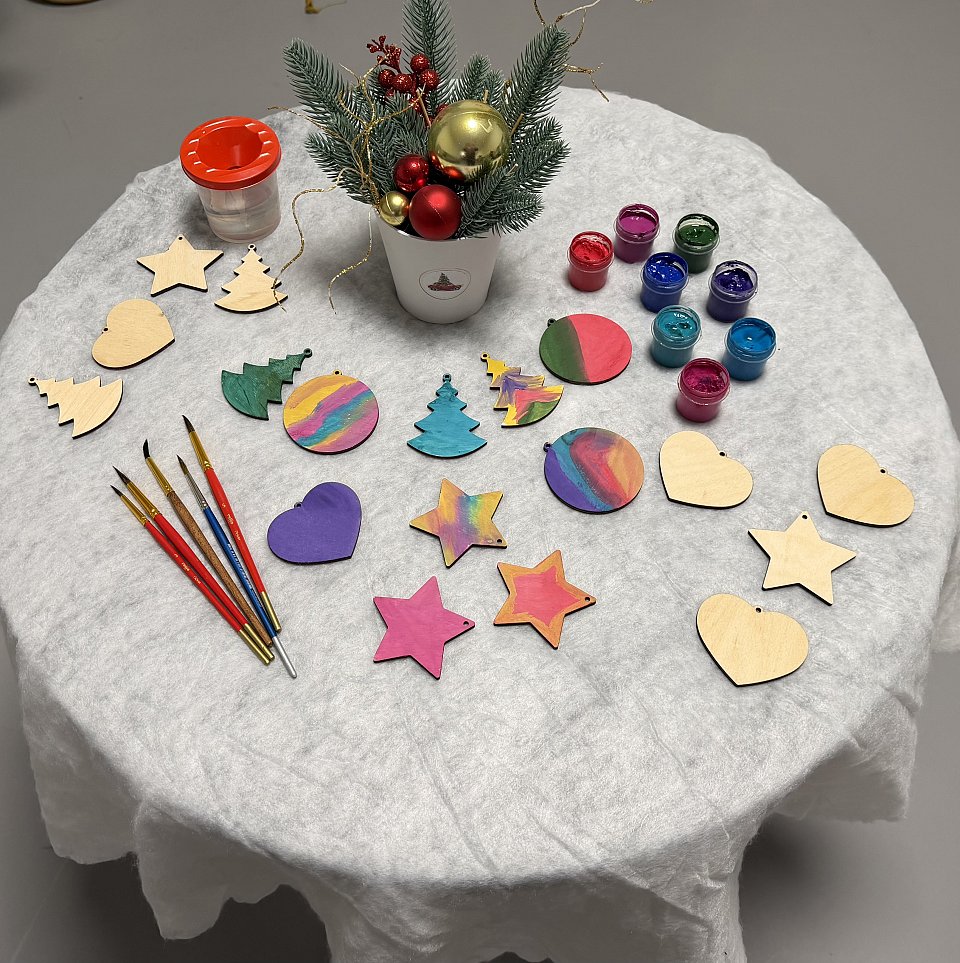 «Мастерская новогодних игрушек» Роспись гуашью деревянных новогодних игрушек.