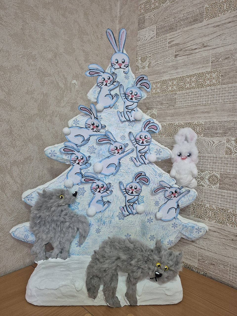 Картон, гуашь, вата, мех.