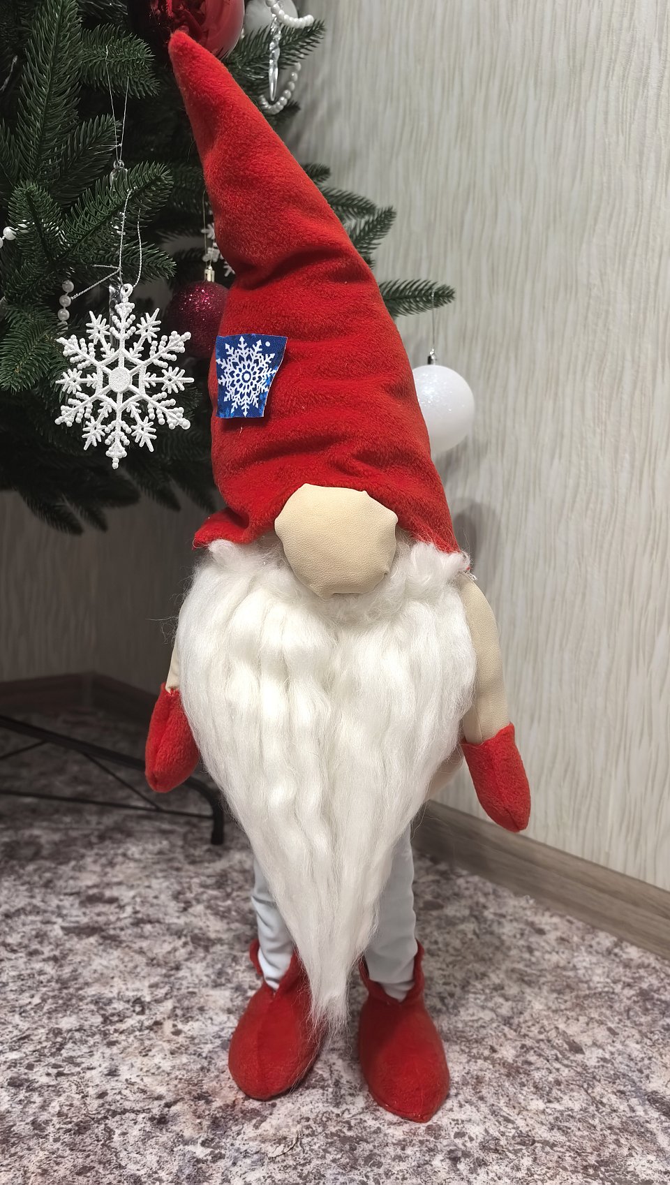 Воспитатель. Сшила новогоднего гнома, с помощью ручного шитья и швейной машинки. Руки и ноги подвижные, сгибаются.