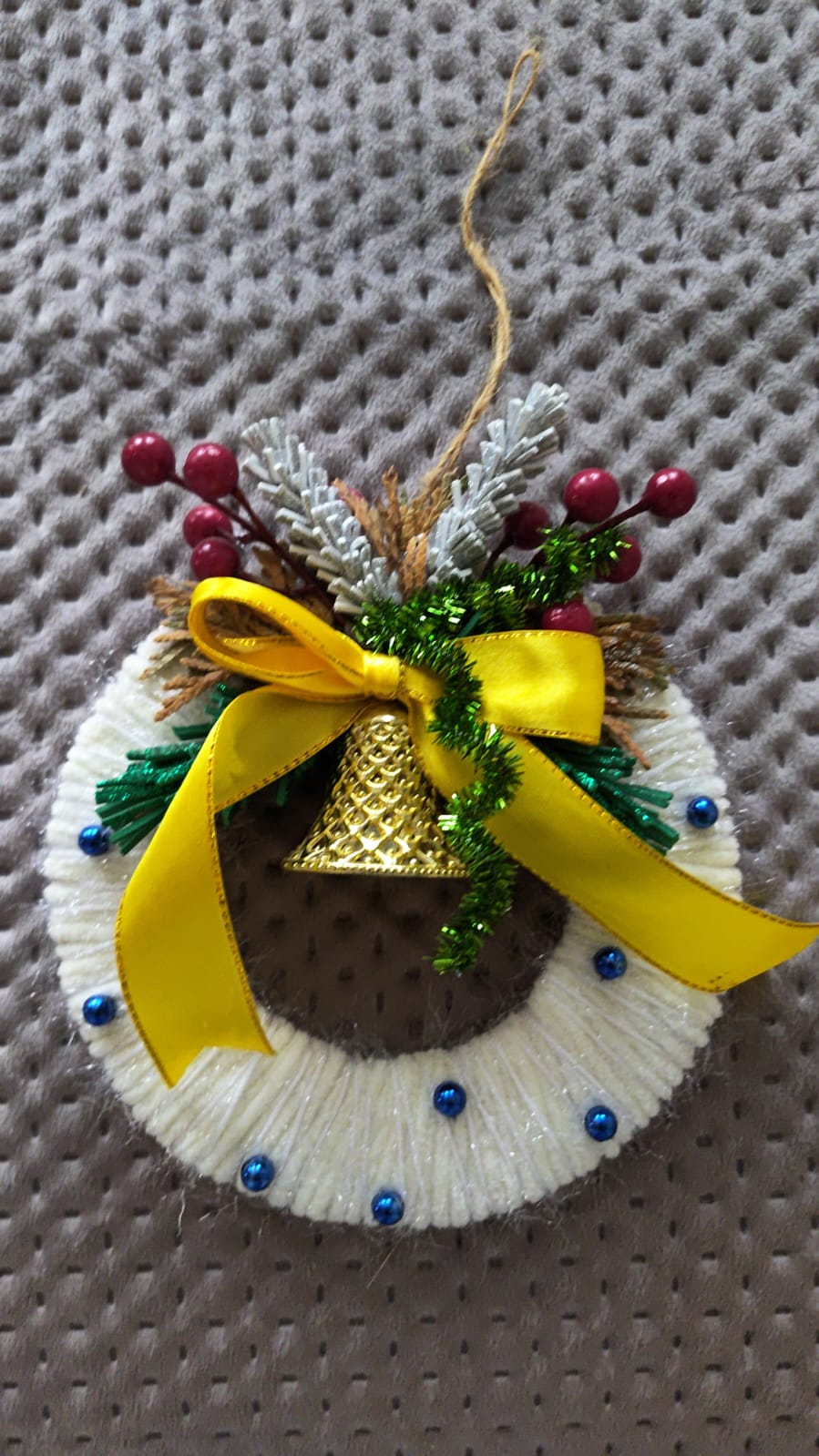 возраст участника 5 лет,работа выполнена ; из атласной ленточки,пряжи серебристой,дождик,бусины. И фантазии ребенка.