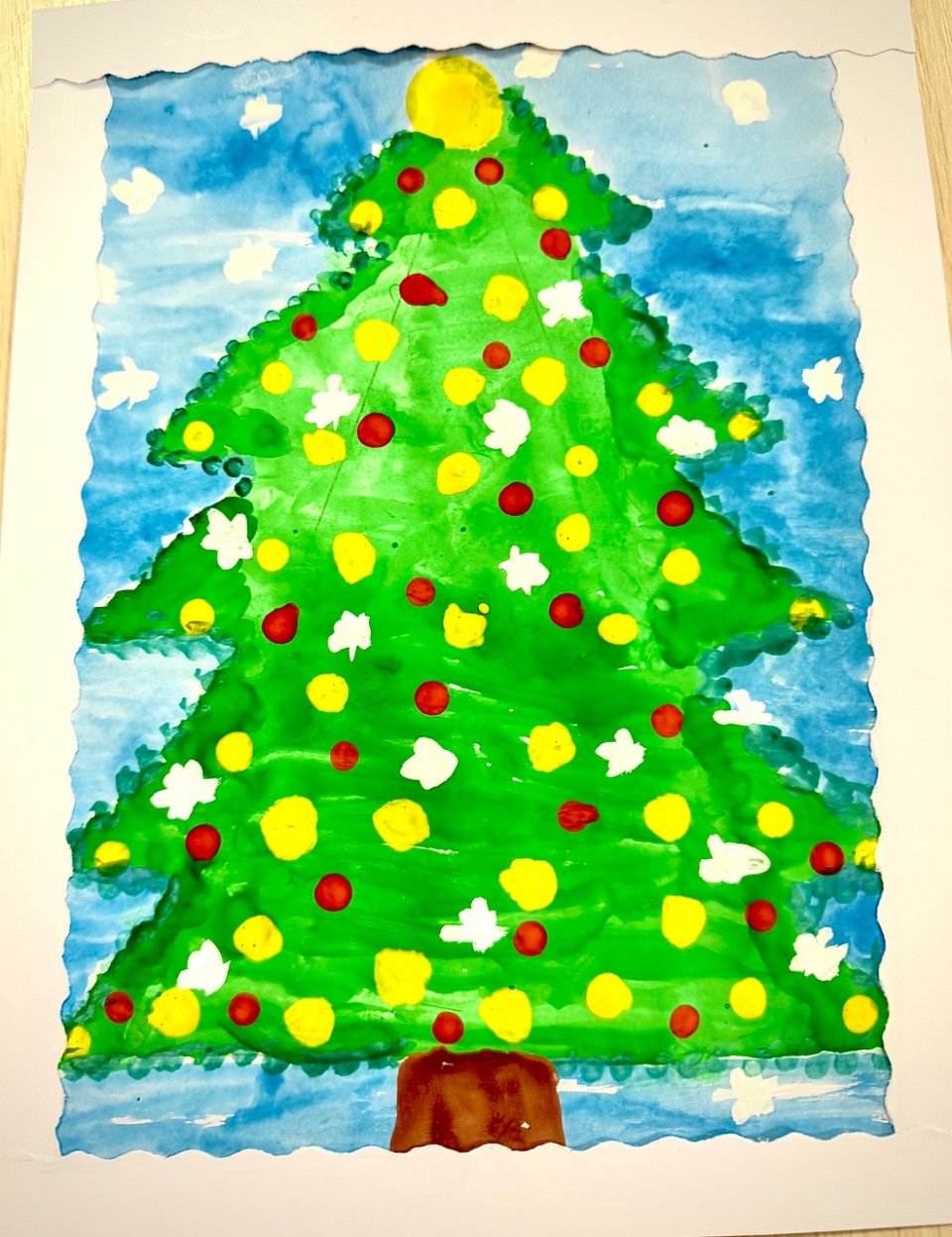 Рисунок выполнил ребенок 4 лет с ЗПР гуашью и кистью с применением нетрадиционной техники - тычкование с помощью ватной палочки.