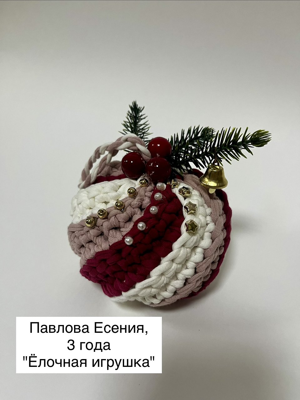 3 года, вязание шарика крючком, украшение искусственными веточками и бусинами