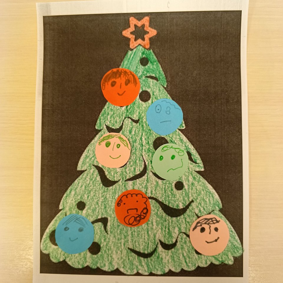 Коллективная работа детей младшей группы под названием " Мамочки и папочки в шариках сидят, нашу ёлочку- красавицу, ох, как веселят"!!!