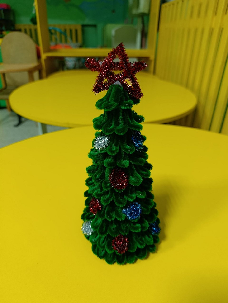 3 года, выполненная в технике работы с синельной (пушистой) проволокой. , клей ножницы, картон, цветная мохнатая синильная проволока
