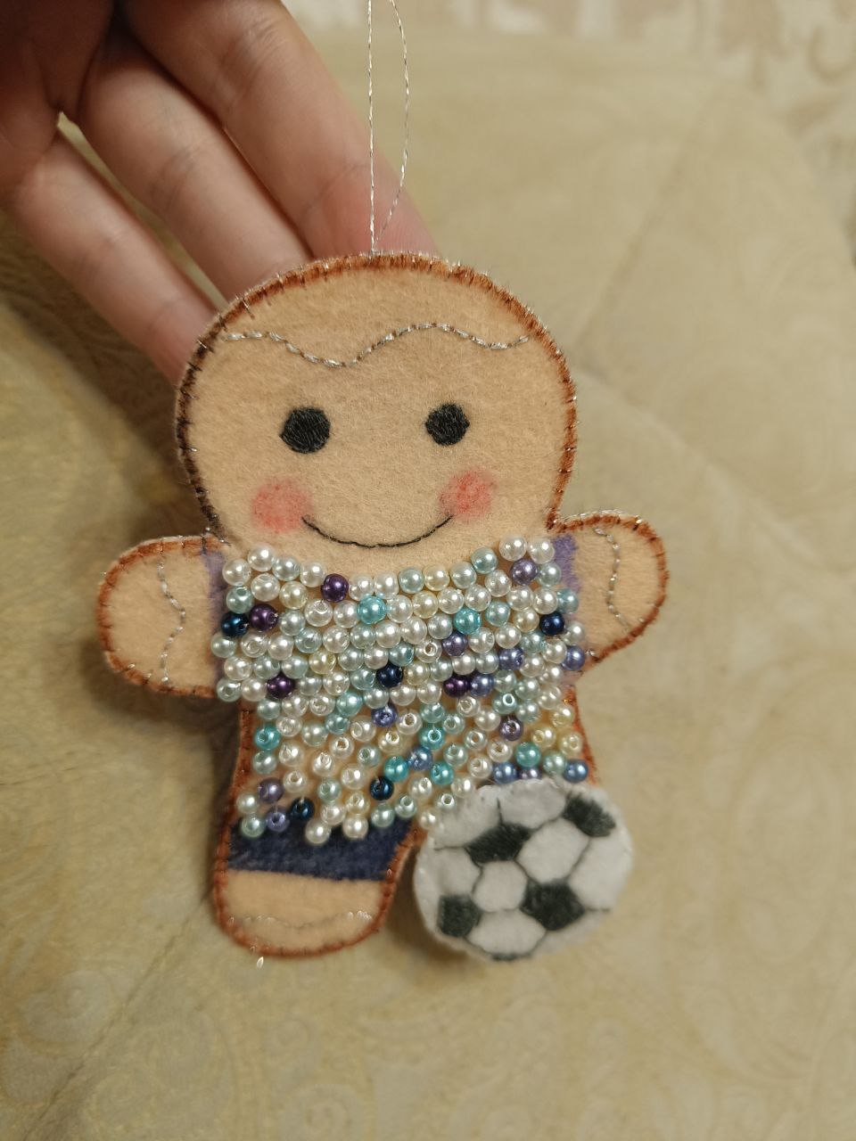 Роману 8 лет. Имбирный футболист выполнен из фетра с применением вышивки и расшивкой бусинками.
