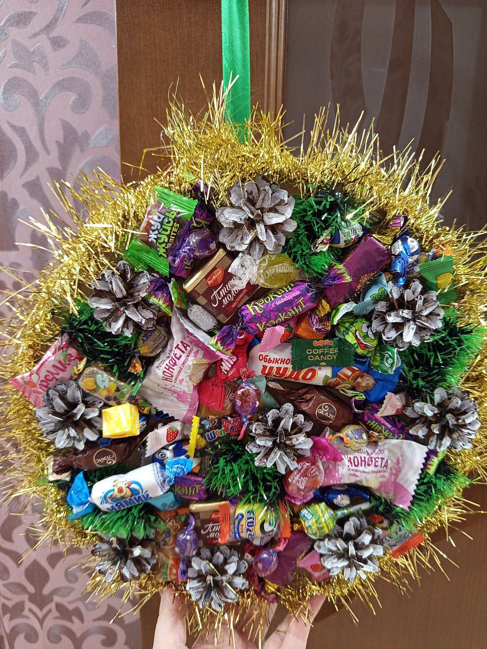 7 лет, конфеты, шишки, мишура, картон.