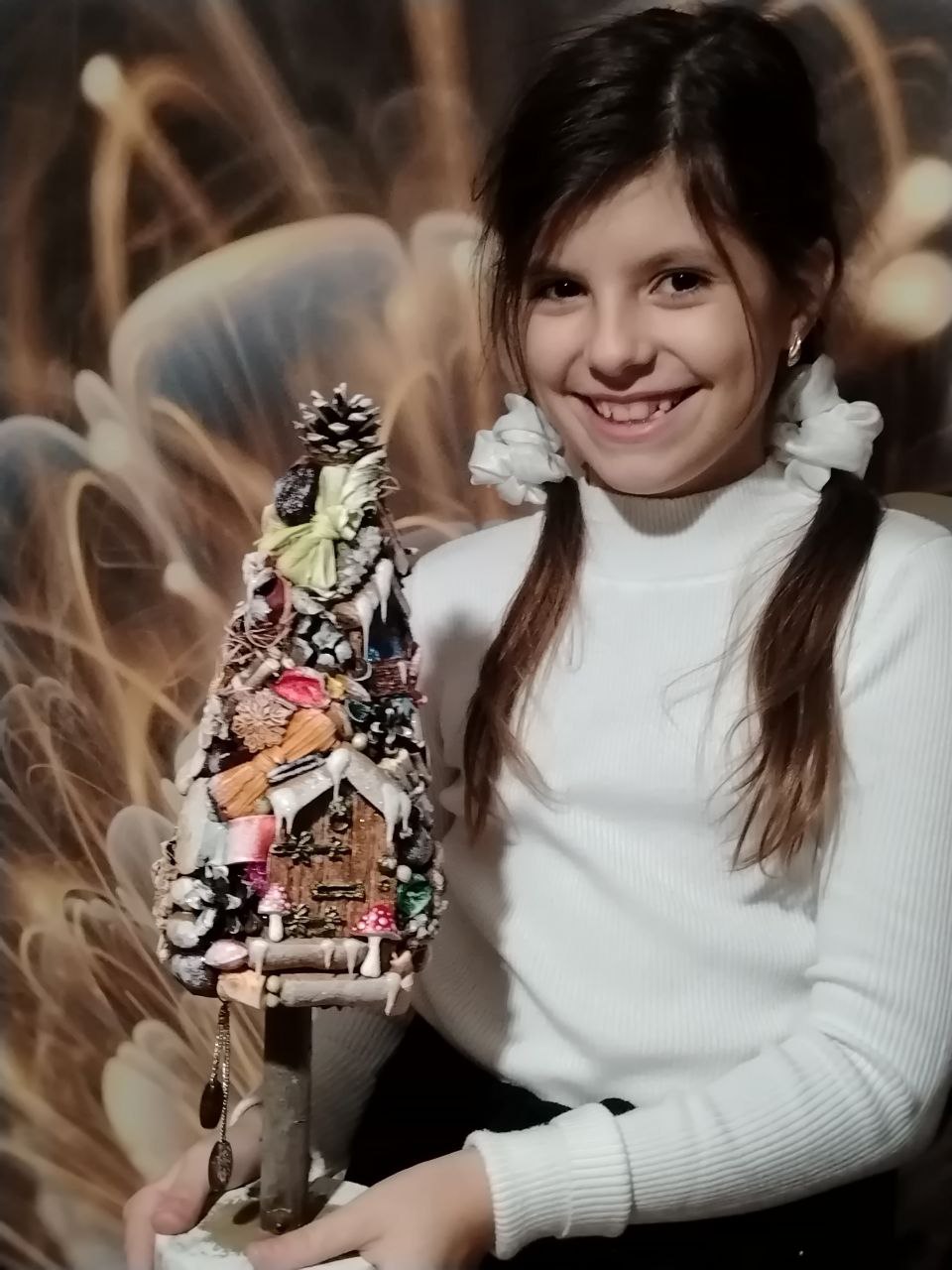 10 лет ,конструирование , эко материалы, шишка, деревянные веточки , декоративные элементы .