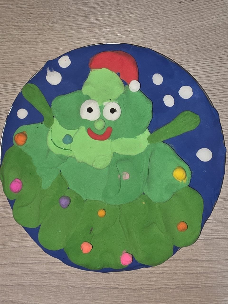 Ребенок 8 лет. Лепка. Работа выполнена из воздушного пластилина на сд диске.