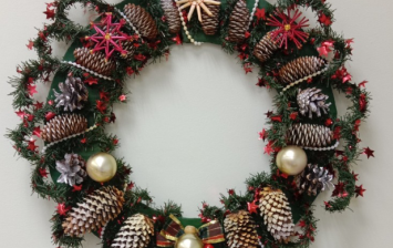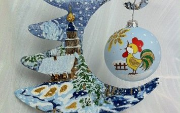 Поделка выполнена из картона, фольги, бусин и герлянды.