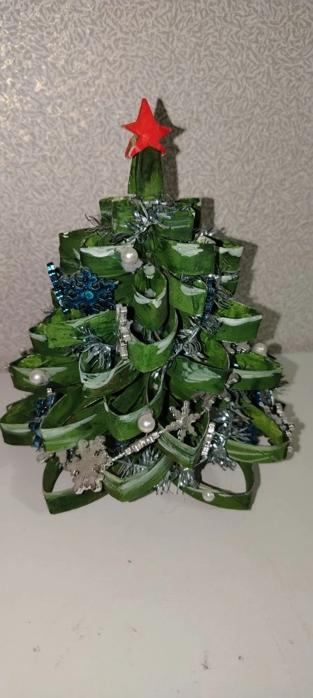 Елочка сделана из втулок туалетной бумаги с помощью клееевого пистолета