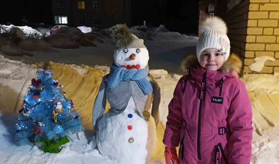 6 лет, весёлый снеговик из снега