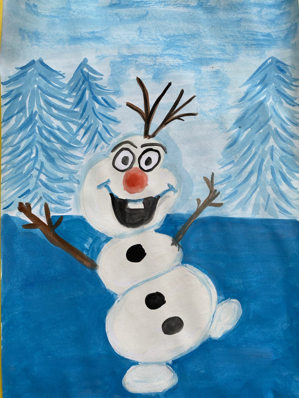 Маленькой художнице 6 лет. Рисунок выполнен на листе А4 гуашью. В работе, выполненной в характерной для дошкольника манере, изображён узнаваемый и любимый персонаж. Рисунок отличается эмоциональностью, смелым использованием цвета и схематичной, но точной передачей основных деталей образа.