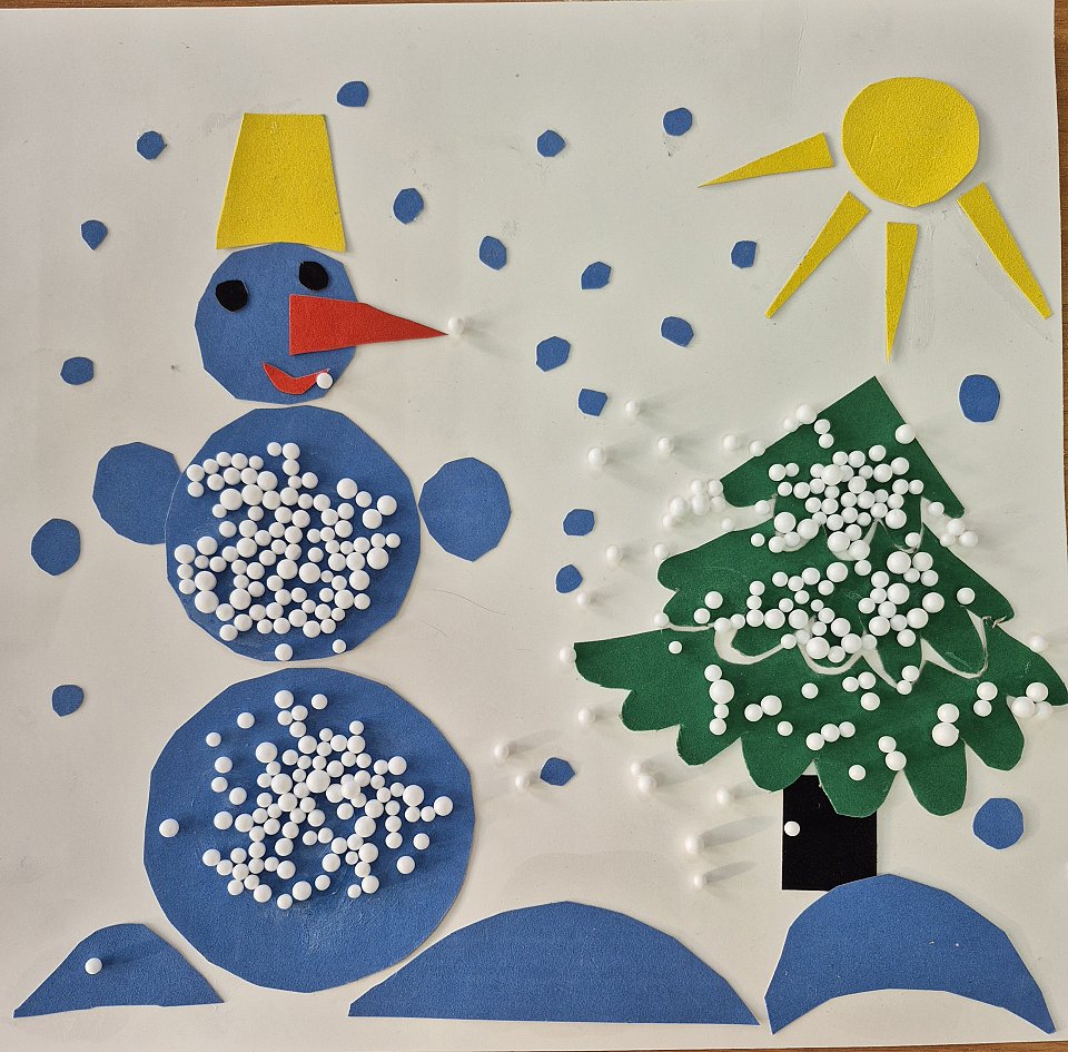 Участнице 5 лет, работа выполнена в технике аппликации их бархатный бумаги с добавлением пенопластовых шариков.