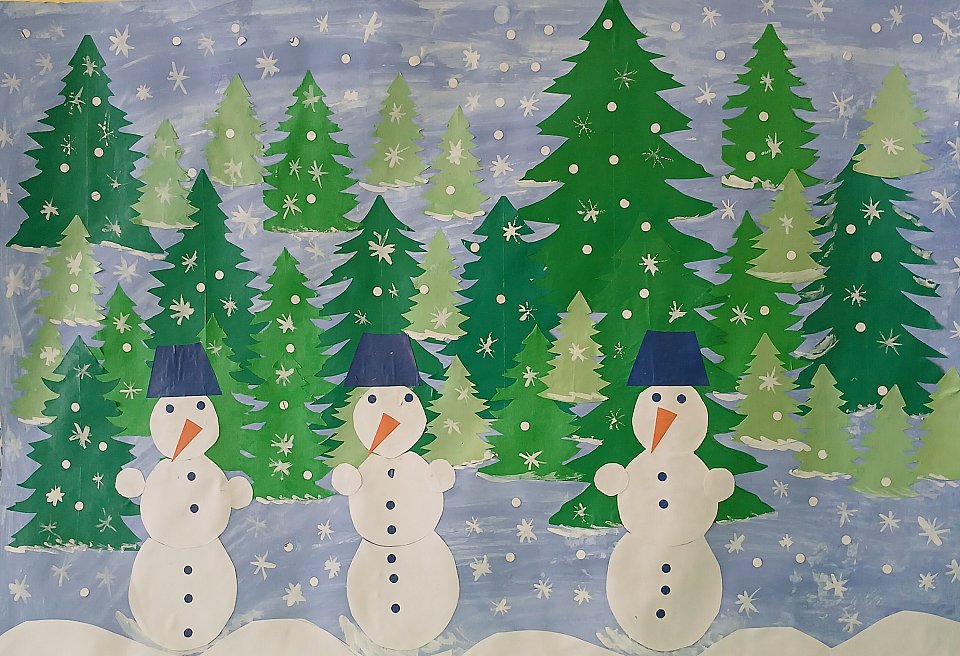 Коллективная аппликация, 5 лет, гуашь, цветная бумага