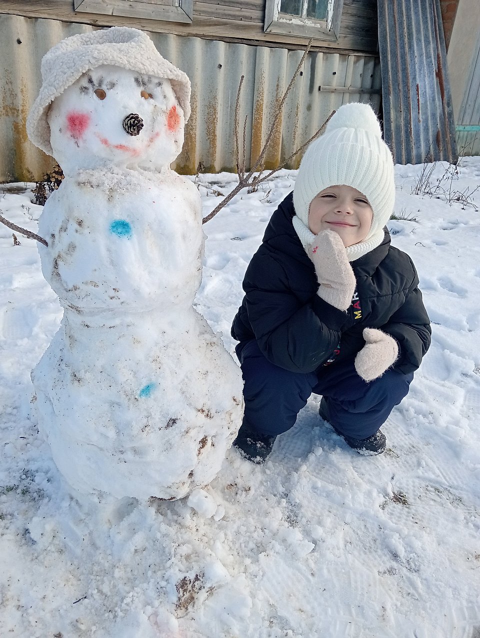 Возраст 5 лет. Снег, шишка, краски