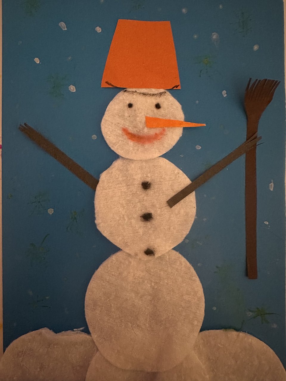 5 лет, аппликация, ватные диски, цветной картон и бумага.