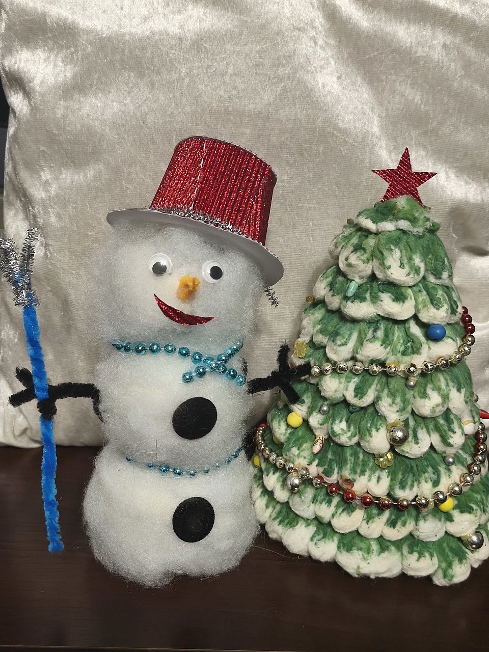 Работа выполнена в смешанной технике, с использованием ваты, пластилина, синтепона, синельной проволоки, картона и гуаши.
