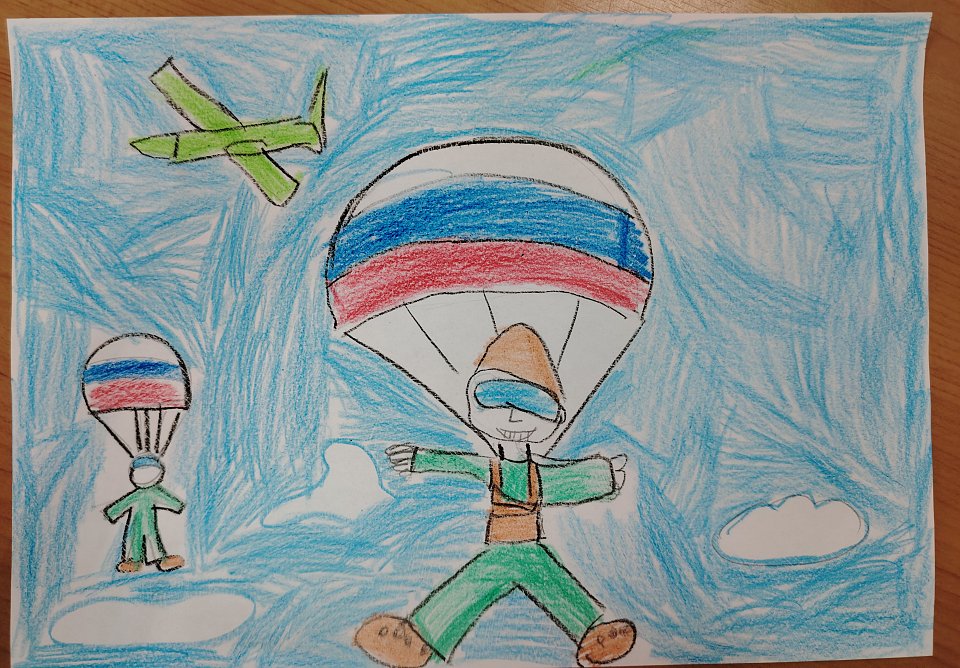 Возраст 5 лет. Работа выполнена в виде рисунка с помощью восковых мелков.