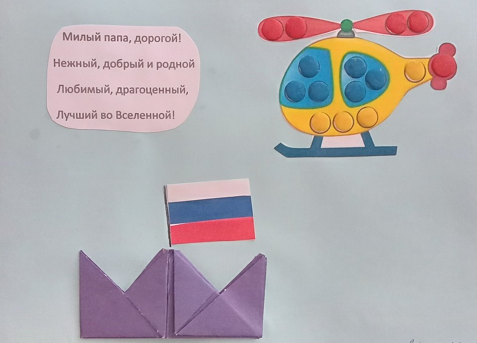 3 года возраст участника, аппликация, оригами, пластилинография техника исполнения, цветная бумага, пластилин используемые материалы, открытка поздравительная для папы