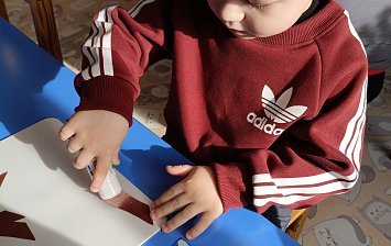 Аппликация из картона (крышки от паучей, картон, бумажные салфетки)