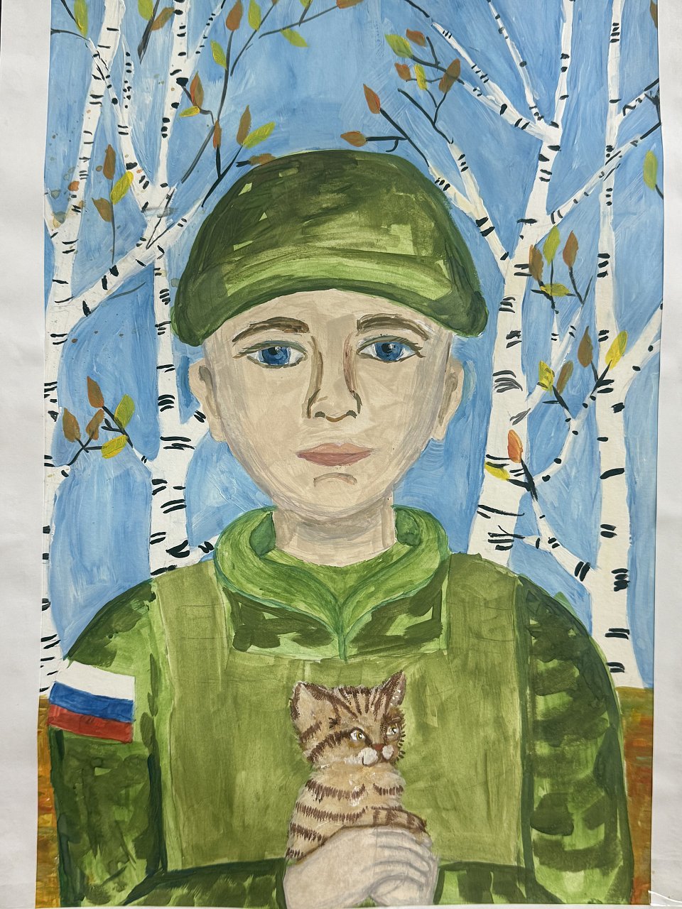Даше, 12 лет, так она видит нашего современного солдата, работа выполнена акварельными красками