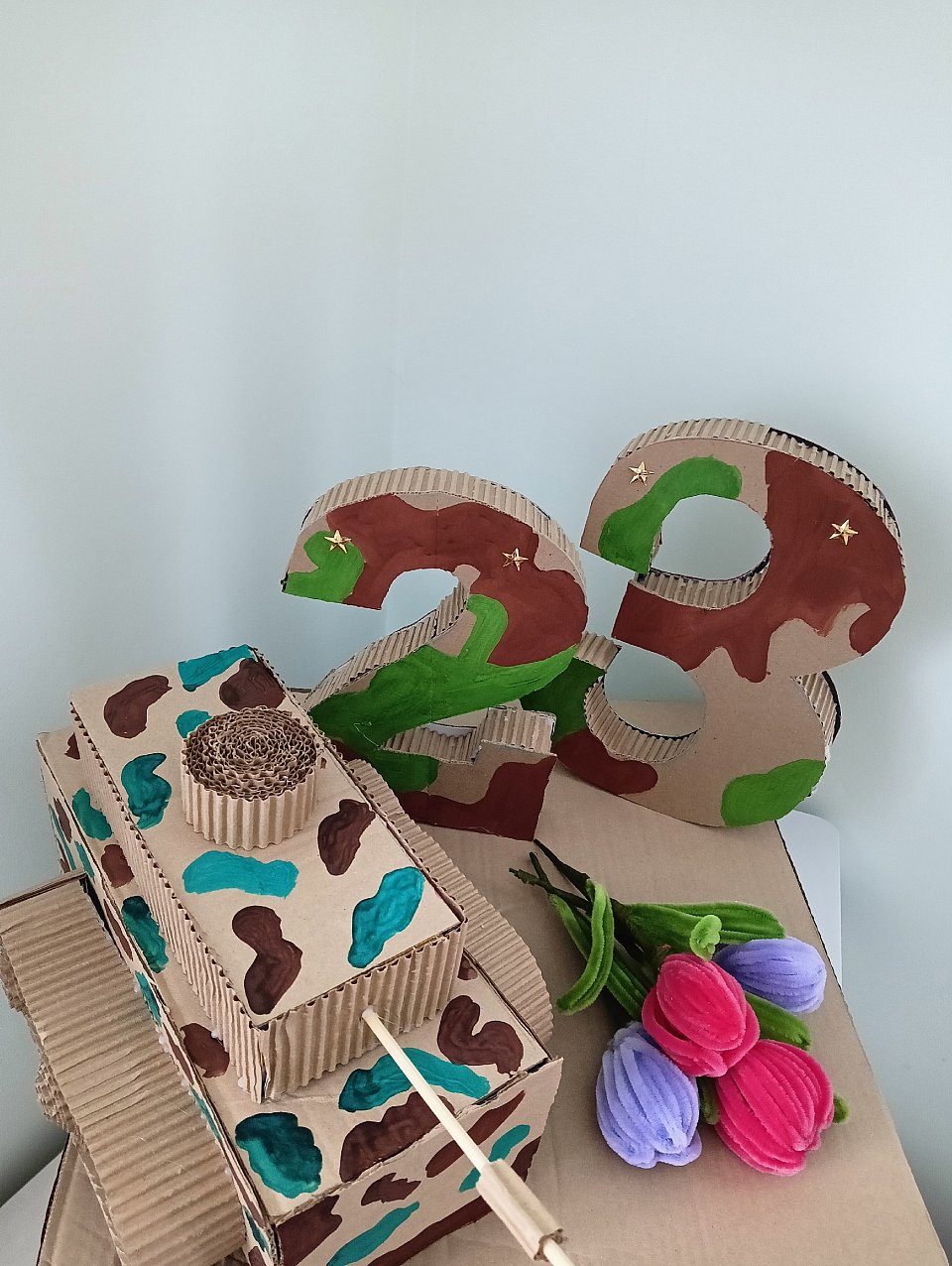 Подделка выполненная из картона, сизальной проволки, гуаши,коробки.