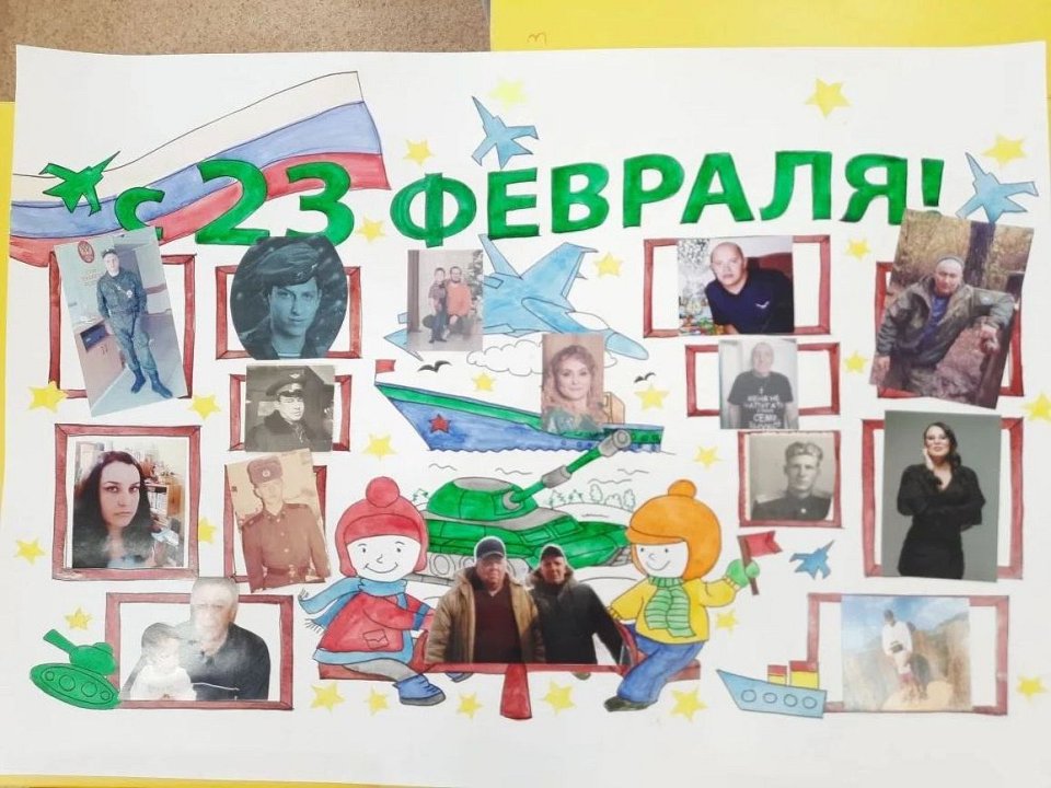 Стенгазета с фотографиями участников военной службы (папы,мамы)