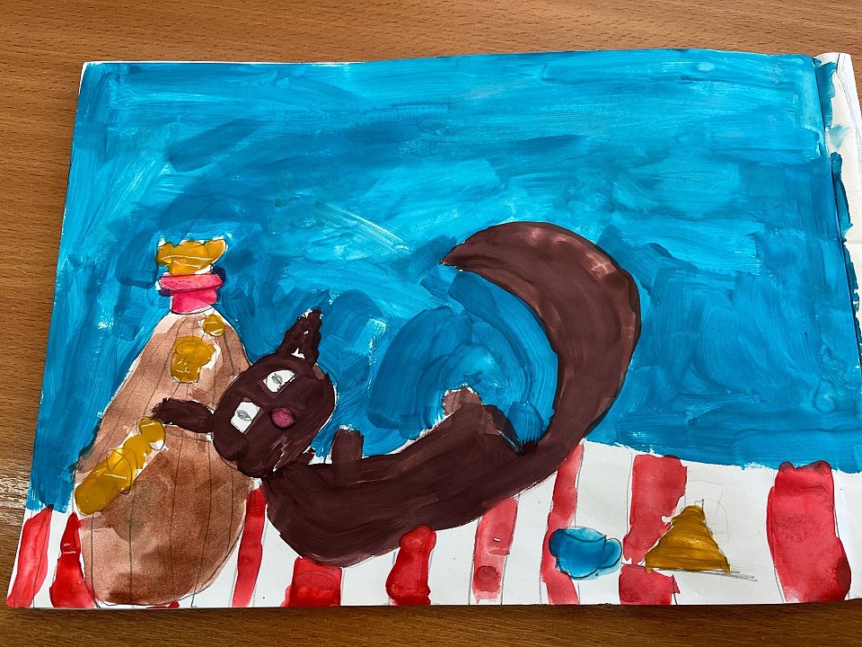 Милый котик наелся блинчиков