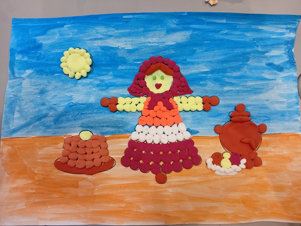 3 года. Лист, карандаш, маркер черный, краски, воздушный пластилин.