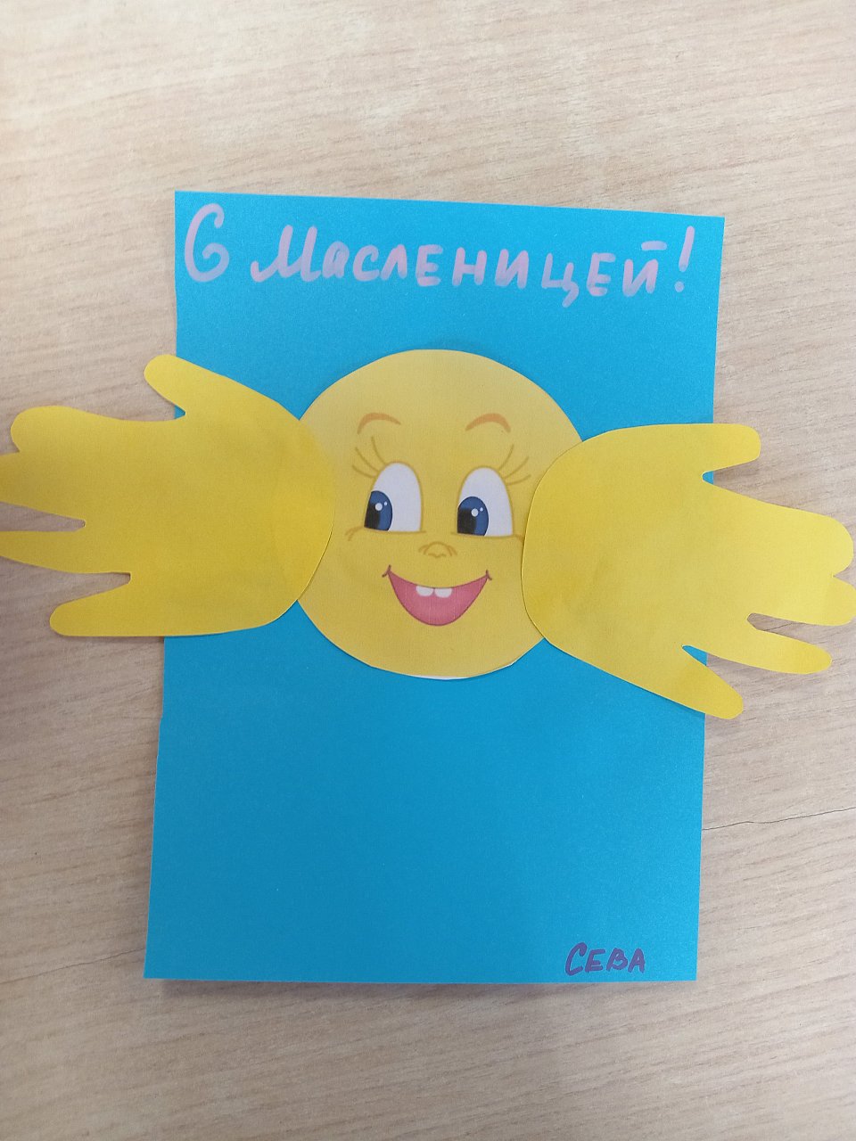 Аппликация из цветной бумаги и детских ладошек