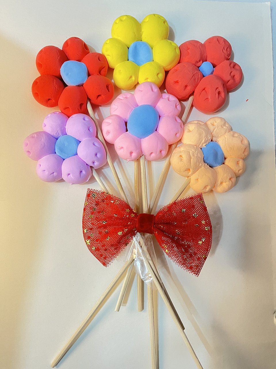Поделка выполнена с помощью воздушного пластилина, картона и декоративных палочек.